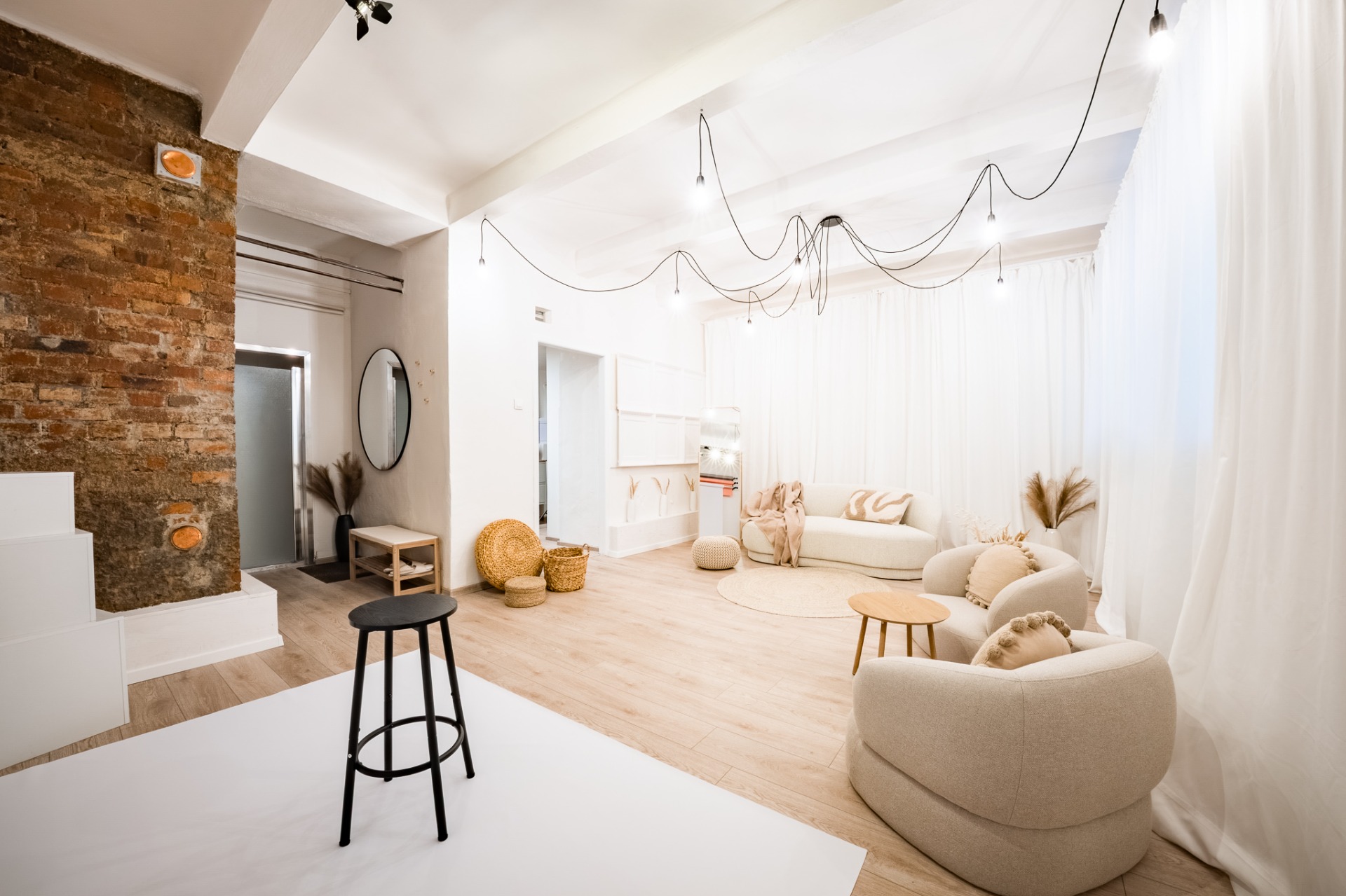 Profesionálně vybavený ateliér pro foto/video/podcast/event v Praze na Pankráci. Stylové scény, výběr z fotopozadí a fotografického vybavení.