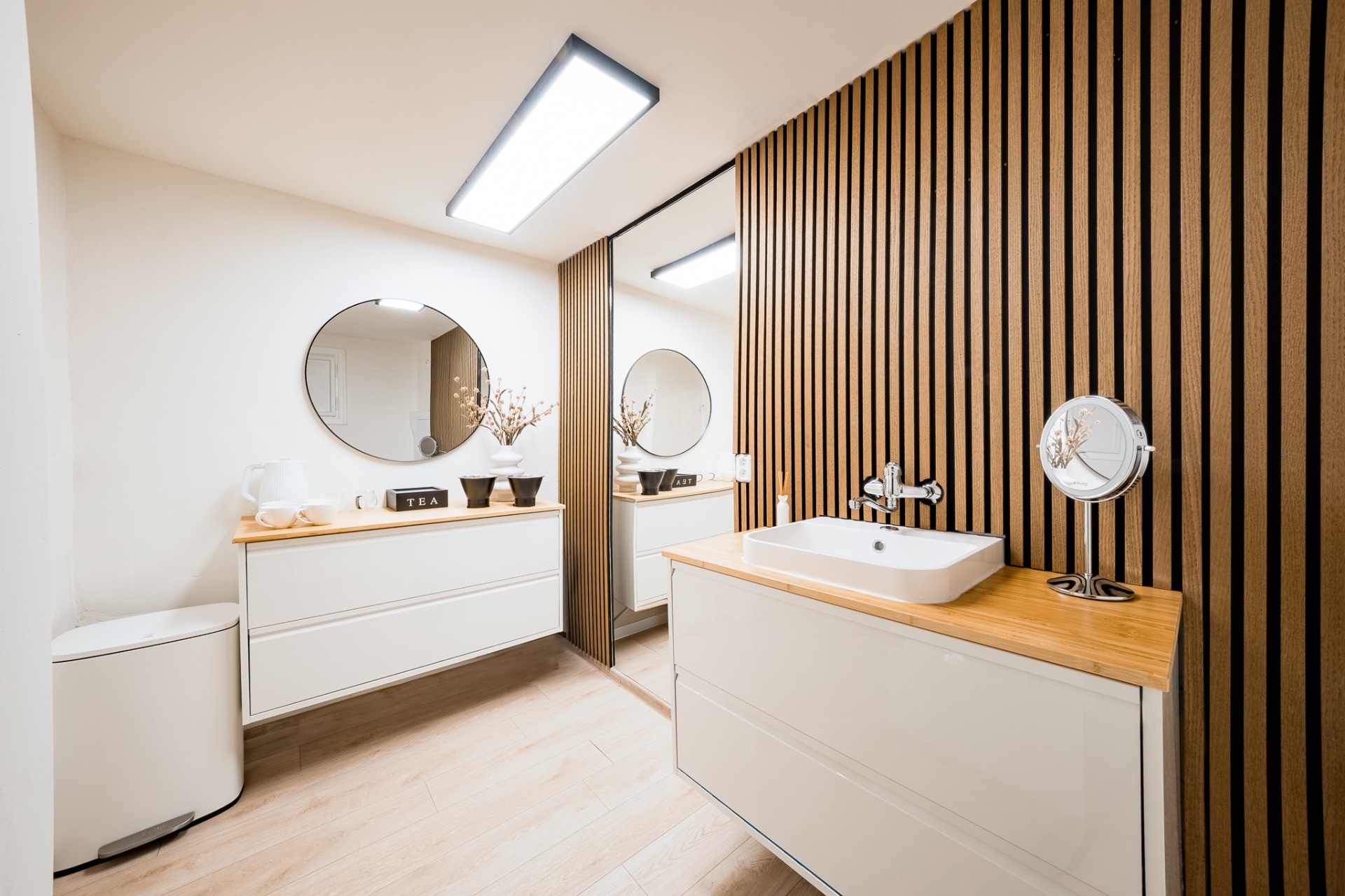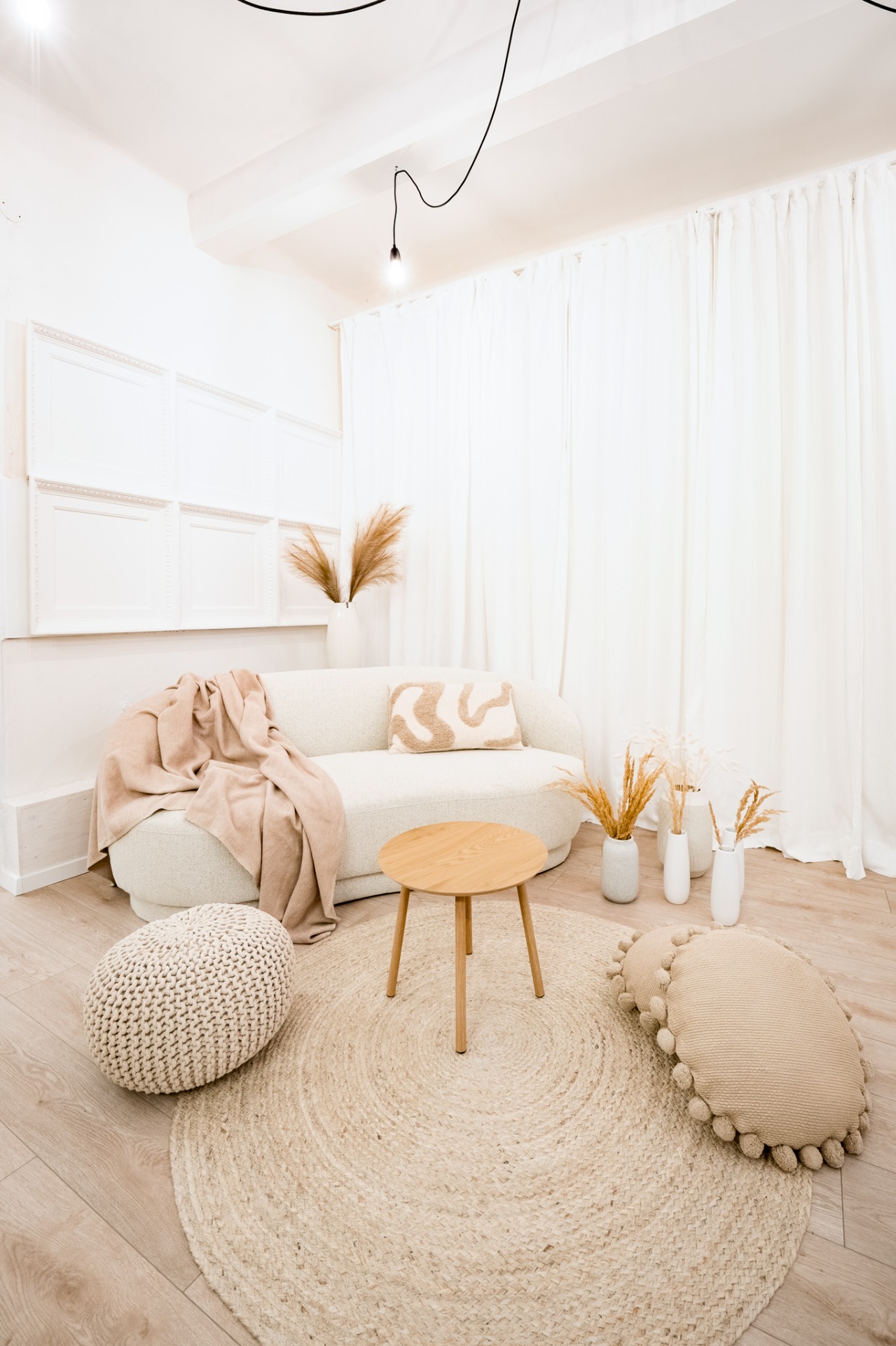Kreativní prostor laděný do jemných nude barev s množstvím pozadí a doplňků. Scény se obměňují.